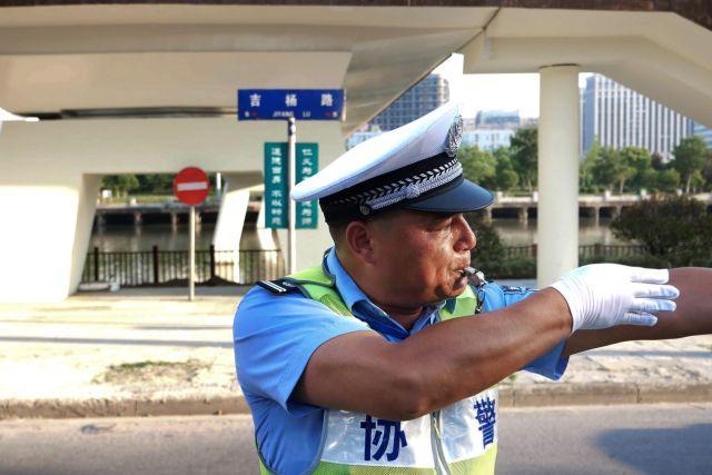 指挥动作优美,杨剑峰吹哨子更有一套。不同的对象,会用不同的音调。对车辆,他会吹得响一些,需要吸引他们的注意力。对于行人,他会吹得悦耳一些。他要让他们觉得,交警的哨子也可以很优美,而不会刺耳。