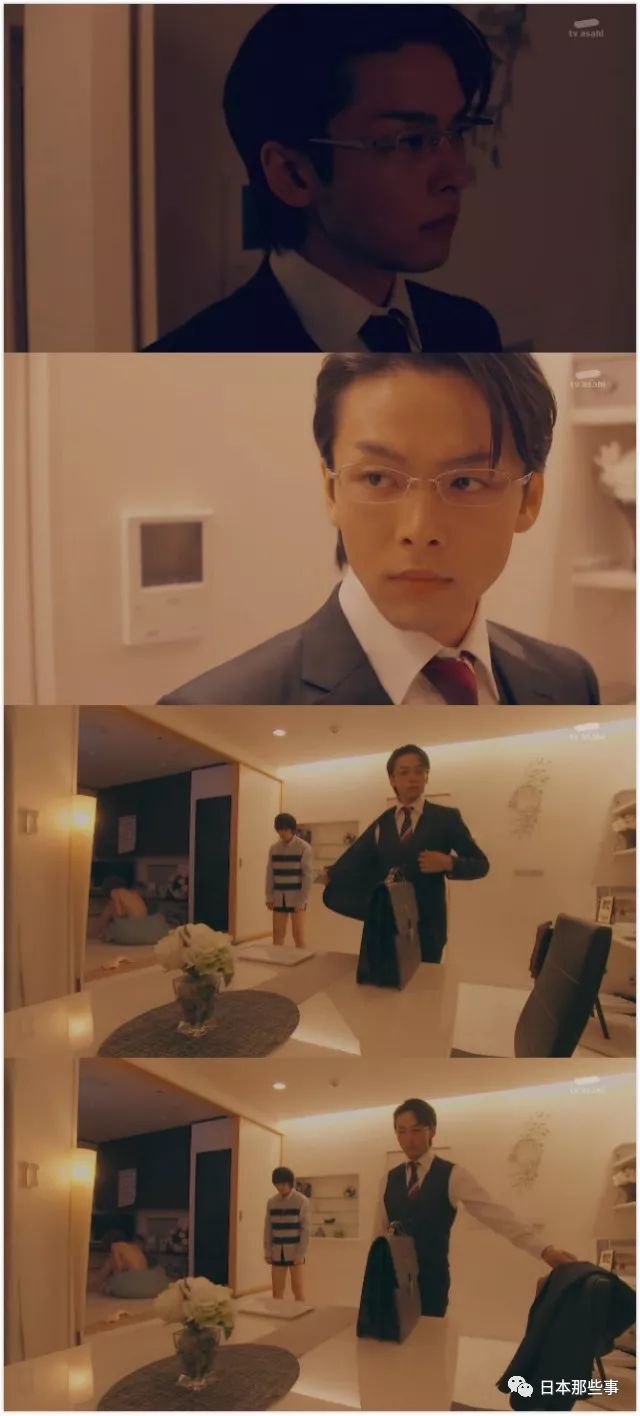 中村饰演的井筒渡,面对出轨的妻子,在捉奸现场不慌不忙,先轻蔑地看一眼,优雅地脱西装。