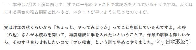 为了作品的塑造,从前一年的秋天开始,作为座长的中村就和一部分卡司开始读剧本,远远早于预定的排练日程。他本人在采访中表示“因为剧本的理解很困难,想要做到精密的磨合,希望尽早开始‘pre排练’。”
