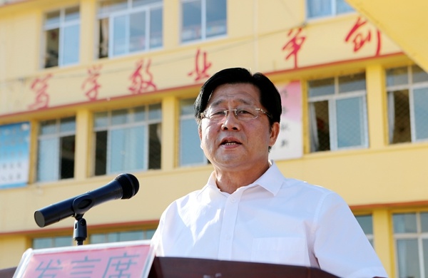 捐赠仪式上,盐山县委常委、宣传部长王振远在致辞中表示,盐山县始终坚持把教育事业摆在优先发展的战略地位,不断加大投入,优化资源配置,办学条件得到了进一步改善,育人环境进一步优化。但在个别偏远农村学校,仍然存在阅读环境差、青少年读物少、课外书籍缺乏等问题,使广大青少年的阅读愿望无法得到有效满足,在一定程度上也制约了该县青少年的健康发展。王振远说,“陶洪君爱心图书室”的捐赠,既丰富了广大师生的课余生活,又扩展了学生们的知识范围,必将对提升学生文化素质、助力脱贫攻坚起到极大的促进作用。王振远强调,希望千童中学能够利用好这些图书,坚持以德树人、以德立人,为学生们提供良好的阅读环境,使他们增长见识、启迪智慧、陶冶情操。鼓励他们用知识改变命运、创造未来。