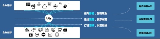 API正成为全球趋势。IDC报告显示:到2021年,超过50%的全球2000强企业,将用API开放生态系统完成其平均1/3的数字化服务交互。API从简单的接口转变为IT架构:底层系统资源API打通企业内部数据;协同流程API串联编排数据应用;最上层用户体验API用于提升体验,赋能企业。