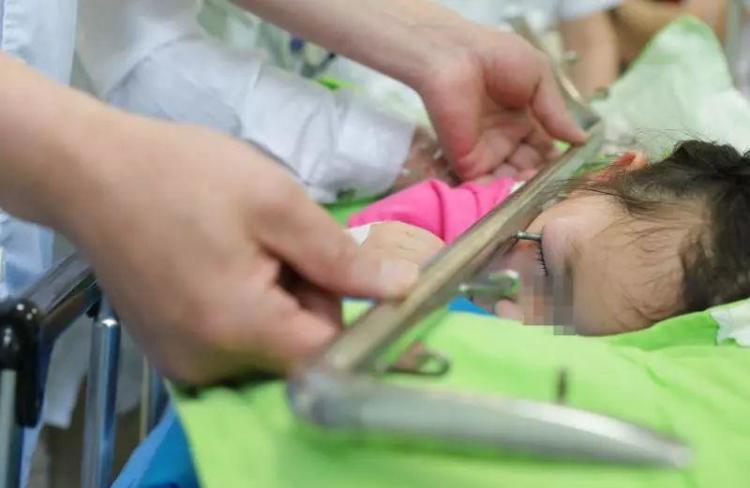 眼科主任李世莲说,“从CT片子上看,挂钩没有伤到孩子眼球,在上眼皮与眼球之间。”她熟练地取出挂钩后,再次检查芸芸的眼睛,查看有无碎小异物、伤口,幸运的是,芸芸仅上眼皮有较浅的伤口 。手术室外焦急的家人和老师听到这个好消息,都松了一口气。