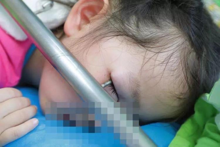 一家人急忙跑到洗手间,看到童童捂着左眼坐在地上大哭,血水顺着脸颊往下流。家里人来不及问缘由就急忙抱着孩子往最近的儿童医院赶。经过医生检查发现,孩子的上眼睑被硬物强行撕开,泪小管也断裂。