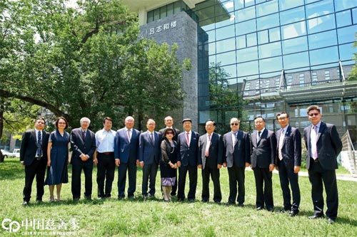 2018年6月29日,吕志和(右6)与夫人吕赵锦屏(右7)出席北京大学“吕志和楼”揭幕仪式。