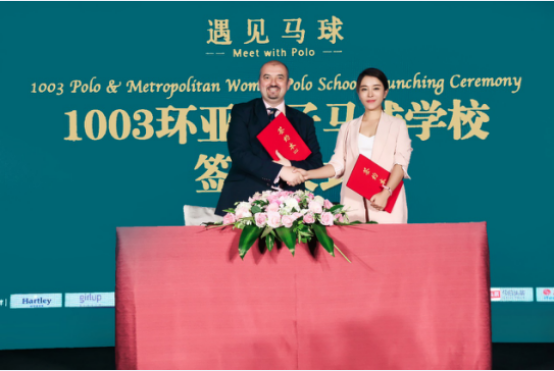 7月5日下午,北京香港马会会所现场,1003 Polo携手亚洲最大的马球俱乐部——天津环亚国际马球会,共同成立了1003环亚女子马球学校。作为全球第一所专业的女子马球学校,1003环亚女子马球学校将会搭建精英教育和精英运动的交流平台,积极推广马球精英文化,为中国精英女性群体创造全新的生活方式体验。王石、俞敏洪等商界领袖都以自己的方式表达了祝贺。