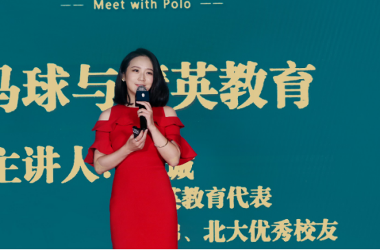 艾问传媒创始人艾诚,作为青年马球公益大使分享了她与马球的渊源,以及她理解的“精英教育对人一生的影响”。艾诚还盛赞了1003环亚女子马球学校成立的开创性意义,它让世界上最代表骑士精神的运动——“马球”回归到国人身边,且传递了“高雅、勇敢、团结” 的马球精神,教育史上应该为其书写上浓墨重彩的一笔。