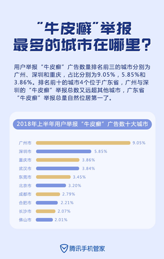 广东省用户举报牛皮癣小广告最积极,举报数量近4.5万