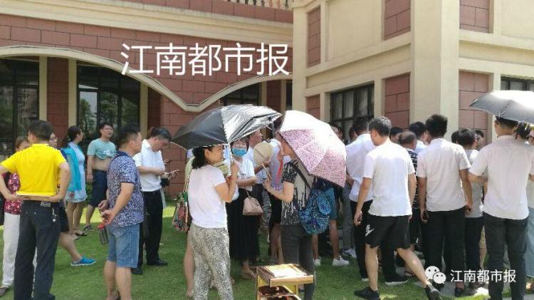 “我们不知道他们真是小区的业主,还是开发商请来的托。”江南都市报全媒体记者在现场看到,有购买意向的少数业主被工作人员从后门请进了售楼部,而在外面抗议的业主则被保安挡在门外,他们只能顶着烈日抗议。