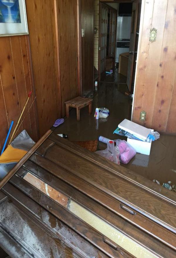 赵先生母亲家被洪水浸泡后狼藉一片。