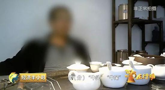 为了让记者一目了然,阿青的丈夫当场演示了如何用其它低价茶叶,拼出高价“牛栏坑肉桂”的过程。