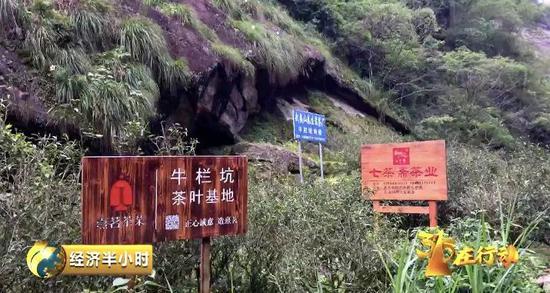 经记者测量,整个牛栏坑大约有1.5公里,最宽处也就二三十米,最窄处只容一个人通过。这条坑谷到处散落着岩石,能种茶的地方不足一半,地上插着的各种企业的广告牌至少有六七十个。