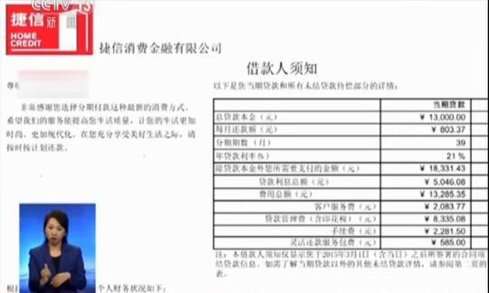 江苏苏州 汪先生:我从捷信平台借了一万三千块钱,利息是五千多,其他杂七杂八的费用一万三千多,最后要(一共)还三万多块钱。