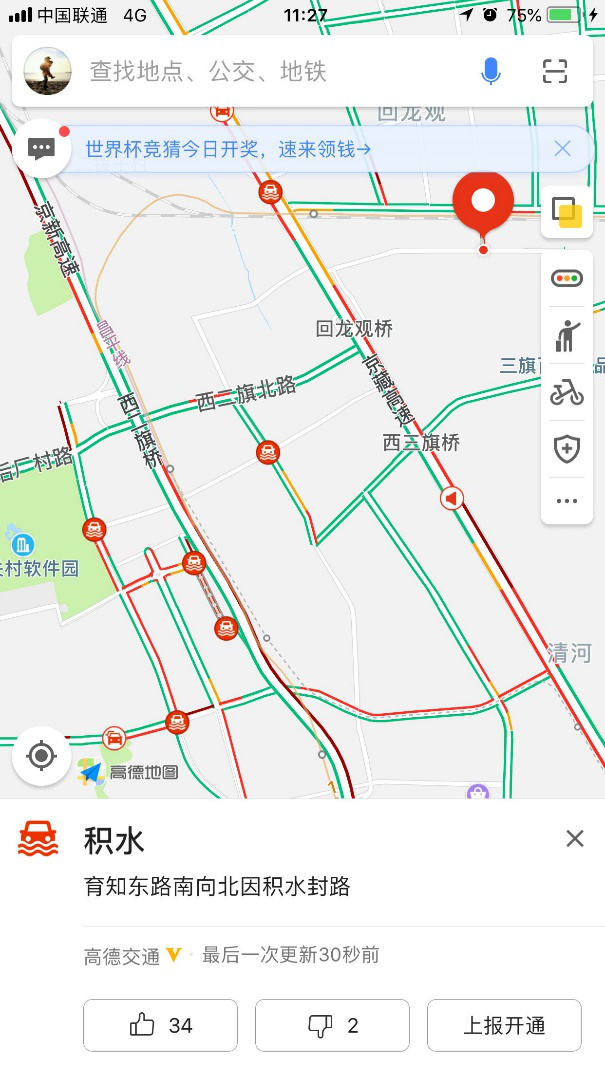 10、447路(地铁上地站-西玉河公交场站),因上地南路积水,采取甩站措施,双向甩上地南路、上地西里2站;