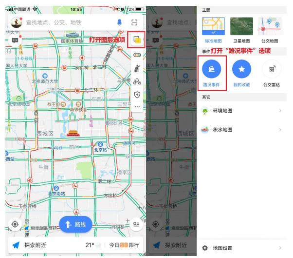 用户只要打开高德地图中的“路况事件”选项,即可在地图首页中查看到积水点位置和相关信息。