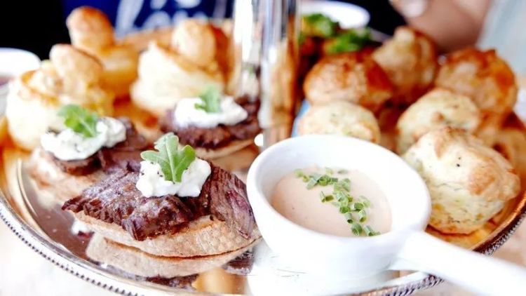 Royal Crescent Hotel(皇家新月酒店)位于巴斯最著名的街道上,它们家的下午茶非常巧妙地融入了当地食物的特色,非常有创意。酒店在夏天会在花园里供应小巧的巴斯肉桂黄油面包、烤饼、三明治和蛋糕。开胃菜还有微型香肠卷和三文鱼鞑靼,虽然不是传统意义上的下午茶,但是也独具特色。
