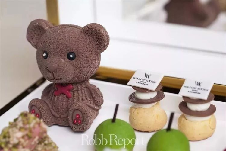 童趣十足的Hmaleys下午茶为小客人们提供了Hamleys泰迪熊造型的甜点,以及华尔道夫极具标志性的红丝绒蛋糕。同样,下午茶餐厅现场摆放了一只2米高的Hamleys泰迪熊,为孩子们拍照合影提供了绝佳机会。