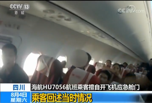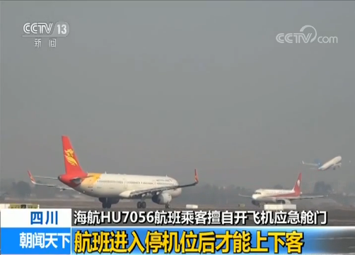 HU7056航班乘客 贾先生:没有,就大概到5点的时候,人们就开始来回问机组人员怎么回事,机组说因为没油了,来回在机场跑道滑行。因为机场没给它安排停机位,开舱门的小伙子就比较激动,当时5点多就比较激动,又过了一个小时,这个小伙子可能实在焦躁不安的,就突然冲上去把安全门打开了。