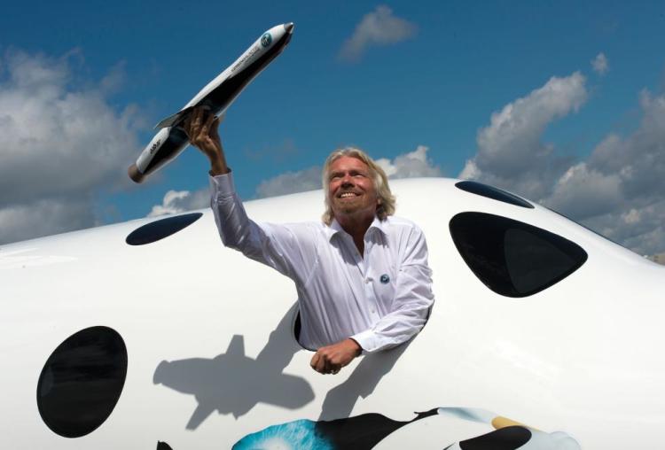 2004年秋天,“太空船1号”又完成了两次太空飞行,为鲁坦赢得了“X Prize”奖项。时任美国总统乔治⋅W⋅布什(George W. Bush)打电话向他表示祝贺。登月第二人巴兹⋅奥尔德林(Buzz Aldrin)和《星际迷航》(Star Trek)中的威廉⋅夏特纳(William Shatner)都见证了胜利的飞行。出席仪式的还有淡黄色头发的英国企业家理查德⋅布兰森(Richard Branson)。无论从经济上还是情感上,布兰森对鲁坦的成功都付出了巨大的心血。30岁那年,布兰森制作了一部记录片来纪念阿波罗11号登月——这是一部迷幻的蒙太奇影片,由望远镜的图像、周围的声音以及约翰⋅F⋅肯尼迪(John F. Kennedy)总统的“登月”演说组成。八年后的1988年,刚刚成立维珍航空公司的布兰森出现在BBC节目“Going Live!”中。一位观众打电话来问他是否考虑过外星探险。布兰森说:“我很想去太空。如果你能建造一艘宇宙飞船,我愿意和你一起去。”
