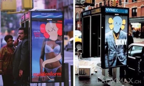 另外一位成功的商业艺术家,我们熟悉的 KAWS,同样也证明了 “艺术商业化、时尚化” 的合理性。虽然是涂鸦人出身,在职业生涯早期就已经利用在广告海报上作画,来使作品获得更广泛关注、提高激发对话的可能性。