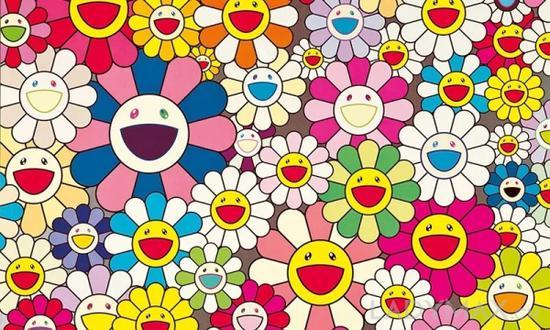 村上隆通过商业合作,将艺术渗透进了生活的各个领域。相较于美国的波普艺术,他的波普艺术不仅仅停留在架上的作品,同时还渗入了商品文化,把 “艺术商业化、时尚化” 作为一个问题放在自己的作品中,然后去证明这个 “问题” 存在的合理性,毫不避讳做艺术就是为了赚钱的观念。