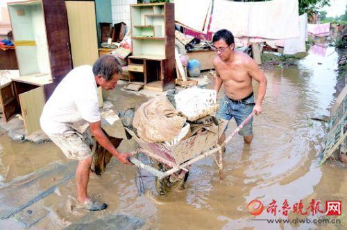 据了解,在弥河下游河段,当天沿线依然有多处村落浸泡在水里。在上口镇广陵学校和营里镇中学安置着几千名村民。更多村民投亲靠友,已经不在本地居住。在洪水退去的村庄里,人们已开始自救,清点家具物品,着手重建家园。
