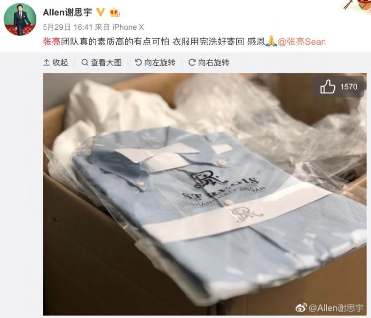 在归还衣物时,张亮不仅将衬衫清洗熨烫一番,还把衣服折叠包装完整,借来什么样还回去就什么样。