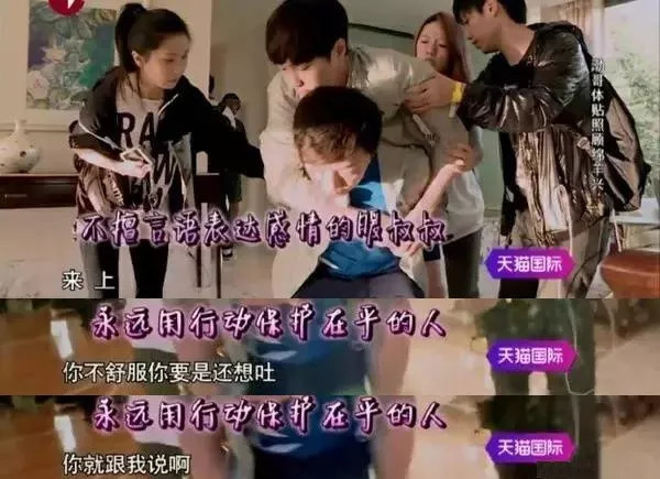 看到因生病而晕倒的张艺兴,即使在录制了一天节目后疲惫不堪,他还是二话不说把自己最结实的后背给了弟弟: