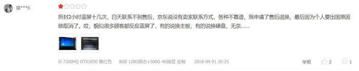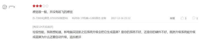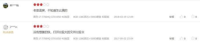 在用户评论中我们发现,与这位网友有过相似经历的买家也不在少数,而且都是机子刚到手没多久就出现了蓝屏、死机的问题。