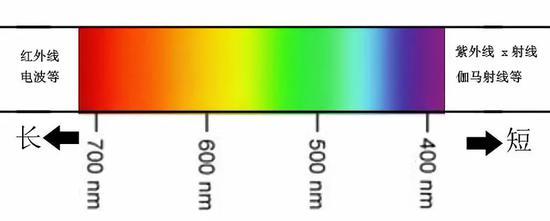 我们知道,可见光是电磁波的一种形式,是电磁波谱中人眼可以感知的部分,相同的能量,波长越长越不易散射,传播也越远。一般人的眼睛可以感知的电磁波的波长在400~760纳米之间,不同频率的光波长也不一样。其中红光波长范围是760~622纳米;黄光波长范围是597~577纳米;绿光波长范围是577~492纳米。