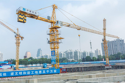 不仅如此,在南京泛悦中心项目,数据传输到后台后,将自动波送,触发“机关”。当环境检测屏上的指数超标,项目上与之关联的喷淋系统便自动喷洒水雾,进行降尘处理,指数恢复后,便又自动启停;当相邻塔吊距离较近时,便会自动停止吊装作业,降低碰撞风险;当塔吊吊重超过“承受力”时,便会发出警报,告知司机要“减负”;当工人靠近洞口时,自动声光警报器便会滴滴作响,提醒工人注意安全。