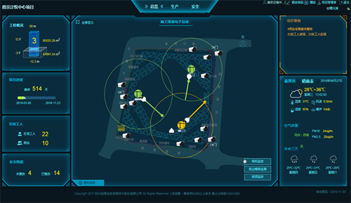 工人上岗的数据与工程进度自动关联,随机生成了一个劳务用工与施工进度的匹配模型,为项目上精准投放劳动力提供依据,避免不必要的人员浪费。安全隐患的种类、数量与施工进度相关联,为管理人员提供一张安全隐患“防治图”,大大提高安全生产工作的针对性;环境监测的数据与天气相关联,及时生成一张“工地晴雨表”,便于及时开启防尘装置。