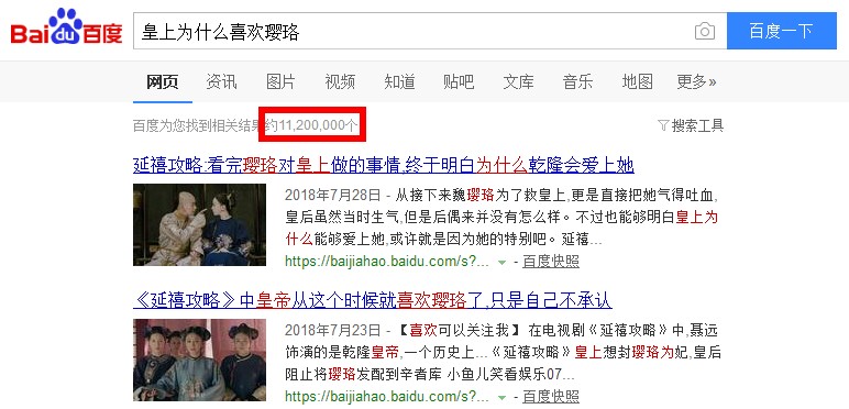 《延禧攻略》有多火?看看“度娘”的回答就知道了。在百度上搜索“皇上为什么喜欢璎珞”,仅这一个问题就能搜出1000多万个结果!