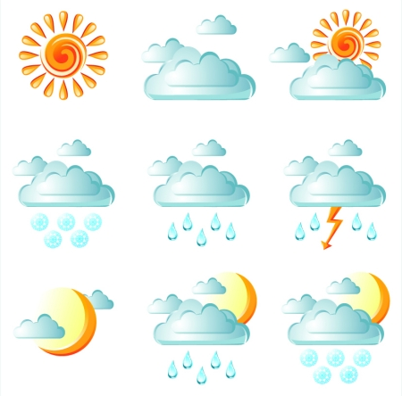 晴天:天空无云,或有零星云块,但中、低云量不到1成,高云量在4成以下,通常用语“晴”。