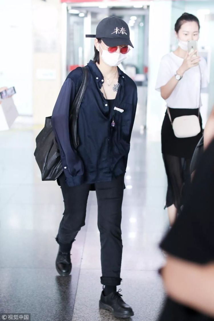 ▲周笔畅黑色衬衫搭配黑色长裤和黑皮鞋,中性风的打扮从不违和,加上肩挎的皮包,酷劲难挡。