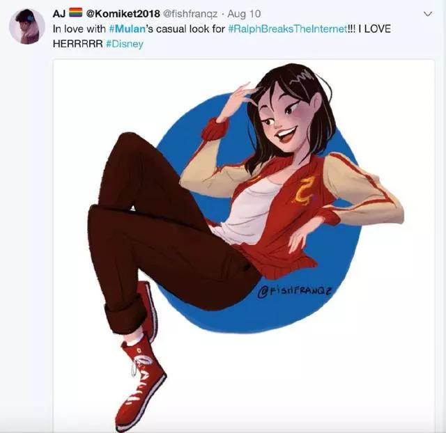 甚至有网友为木兰cos了无敌破坏王的造型:“我真的爱死木兰在《无敌破坏王2》里的造型了!好爱她!”