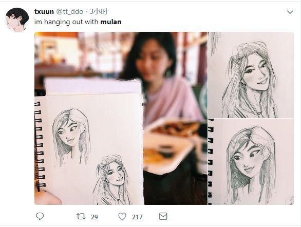 甚至还有很多网友在推特上发布了自己手绘的木兰图。