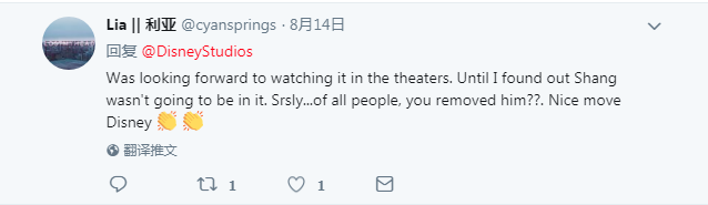 本来想去看,后来知道李翔的角色被删掉了。你们是认真的吗?你们删掉了他?迪士尼改得真好啊!(Pia Pia Pia)