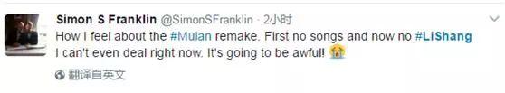 “问我觉得拍花木兰的真人版感觉怎么样?没有歌了,也没有李翔了,我整个人都不好了。一定很难看…”