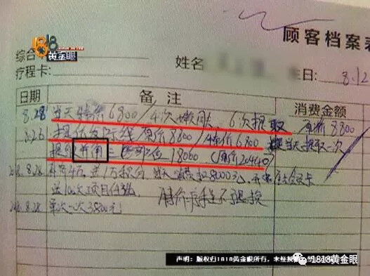 小吴给记者看了这个消费清单的照片,当天特价6800,4次嫩肤,6次提取,特价6800,提发际线特价6800,提取鬓角三部位特价18000,所谓的“并角”记者猜应该就是小吴的鬓角,还有一个当天消费扣8000。记者加了一下,要3万9千多。他说当时几个人围着他,他也没看就签了字,后来才知道要付这么多钱。