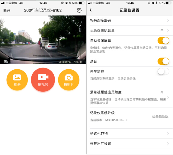 值得一提的还有前后双录功能,行车时段全程安全守护。只是在进行后录的时候,行车记录仪和手机会处于暂时断开状态。