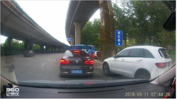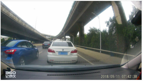 这是临近傍晚6点拍摄的画面。室外光线不错,有轻微的逆光,但正前方牌照看得非常清楚,甚至都不用放大。