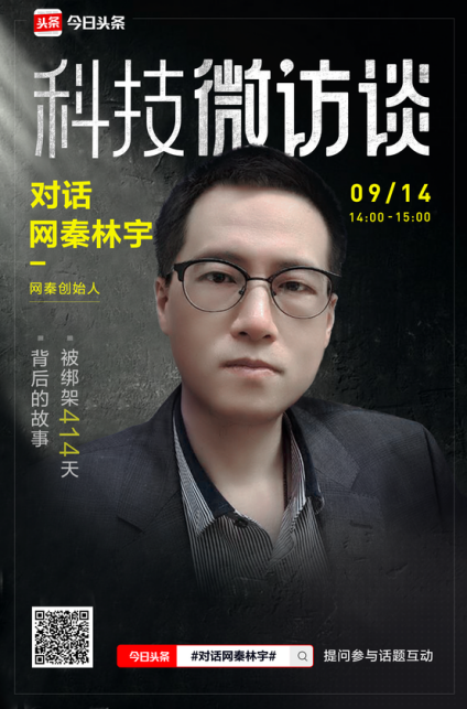 9月14日下午2点,被绑架414天的网秦创始人林宇在今日头条接受科技微访谈,通过这个平台向社会还原这414天的噩梦遭遇,同时回答了时下社会舆论非常关注的一些疑问。