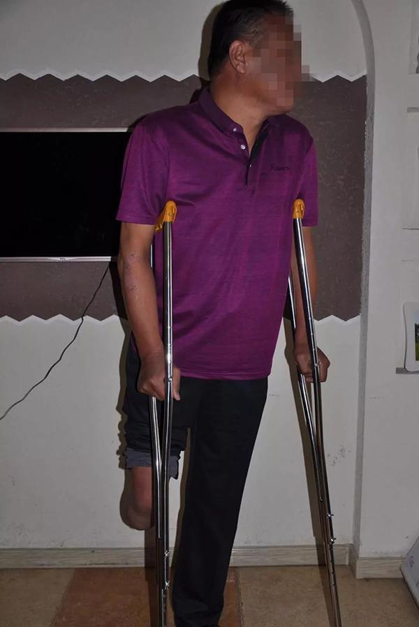 60岁的张志勇望着自己安着假肢的断腿,回想起几年来的经历,他不禁眼角湿润。