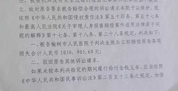 2016年11月7日,榆树市人民法院依法审理后下达了民事判决书。法院认为,公民的身体权、健康权、生命权受法律保护,任何组织和个人不能侵犯。张志勇在榆树市人民医院住院治疗期间,该院及其医务人员在诊疗活动中有过错,对张志勇的损害后果应承担赔偿责任。榆树市人民医院对鉴定书没有意见,抗辩没有完全过错的理由无事实和法律依据,不能成立。法院判决榆树市人民医院赔偿张志勇各项损失合计1030905.60元。