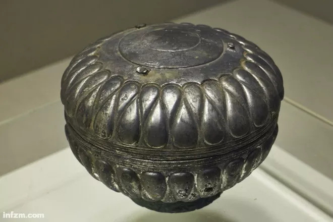 西汉南越王博物馆收藏的蒜头纹银盒。(视觉中国/图)