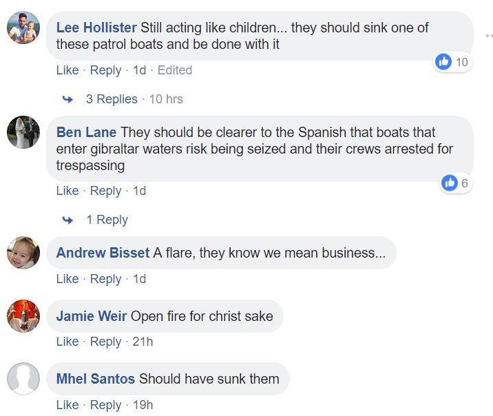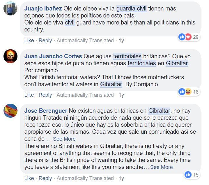 而西班牙和英国海军在直布罗陀海域上的持续“摩擦”,自然也挑动着两国民众的情绪。在境外大型社交网站Facebook上,英国网民就表示“应该干脆把西班牙人击沉,给他们点教训”;西班牙网民则反击说“直布罗陀就是西班牙的!我们的海警比政客们勇敢多了!”