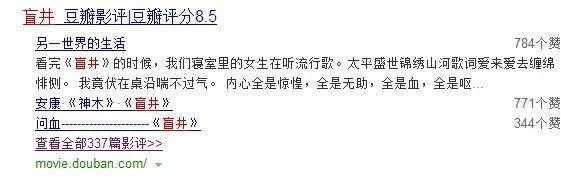 电影曾在豆瓣评分高达8.5,现在链接已经被豆瓣删除,李杨导演的作品《盲山》,同样在豆瓣高达8.1的评分。