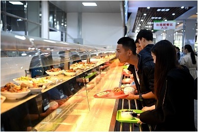 有时候为了躲开拥挤,他们干脆回宿舍叫外卖,直到去年学校和园餐厅推出了自主选择和智能结算模式,何子桓和他的同学们终于能“把饭吃得从容些了”,他们可以“不慌不忙”地在自助区域选好饭菜,在出口处快速地结算,这与之前“等待时间长、选择时间短”的打饭模式相反,让他们的幸福感直线上升。