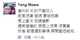 有网友发现后截图PO网,该女还一度通过留言与网友对呛:“有本事不要用假帐号啊,不开心出来打一场,看要去哪里死比较不会臭,家住海边的垃圾!”发现自己被“人肉”后,该女又写道:“我的动态有超过700个人在观看耶,好开心,可喜可贺!”