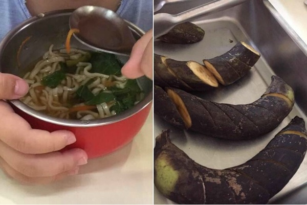 近日,一名网友在“爆料公社” Po文,表示孩子就读台中某私立幼儿园,回家常喊肚子痛,原以为是肠胃蠕动不良或是吃了什么东西才造成,后来才知道是学校餐点有问题,不但将泡面、碱粽、饼干等加工食品当早餐,午餐水果的香蕉甚至呈现黑紫色,让网友不禁直呼“太夸张了”、“简直把小孩当厨余桶!”